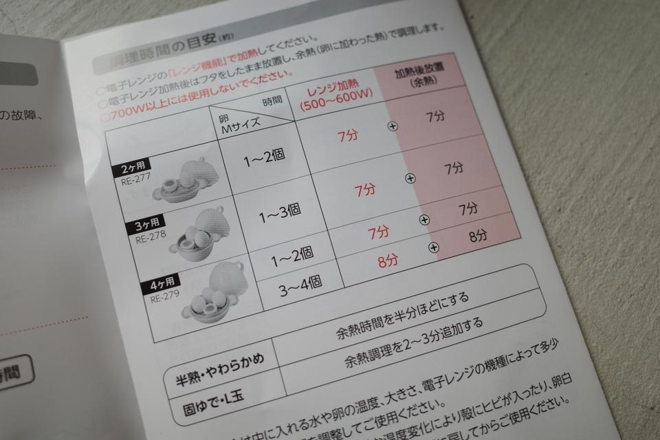 しかし、今回はLサイズのたまごのため、説明書通り加熱時間を2分追加しました。500Wにすべきか600Wにすべきか悩みましたが、今回は600Wでやってみます。