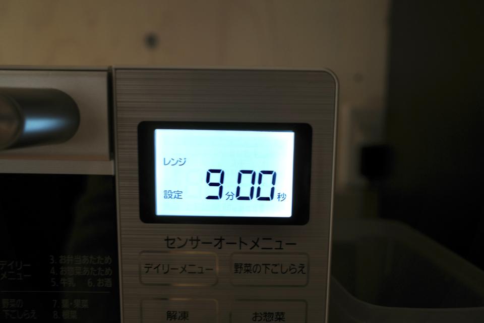 基本レシピは、500W〜600Wで7分加熱+7分放置です。