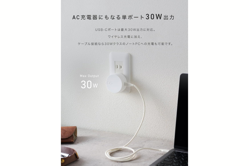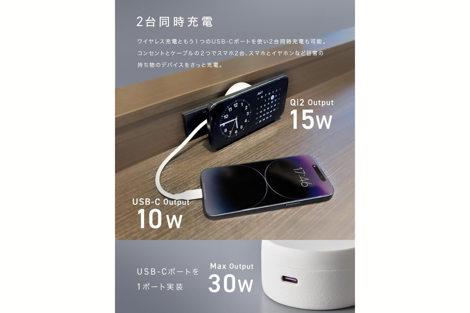 ワイヤレス充電の場合は最大15W出力ですが、USB type-Cポートは30W出力に対応。