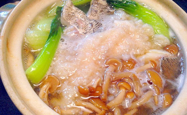 「タラとなめ茸とチンゲン菜の蓮根おろし鍋」。