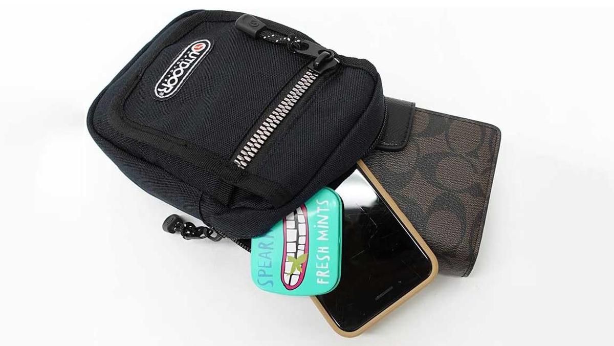 OUTDOOR PRODUCTS(アウトドアプロダクツ)の「ミニポーチ」は、タテ17cmxヨコ12cmxマチ5cmと、スマホがすっぽり入る大きさ。