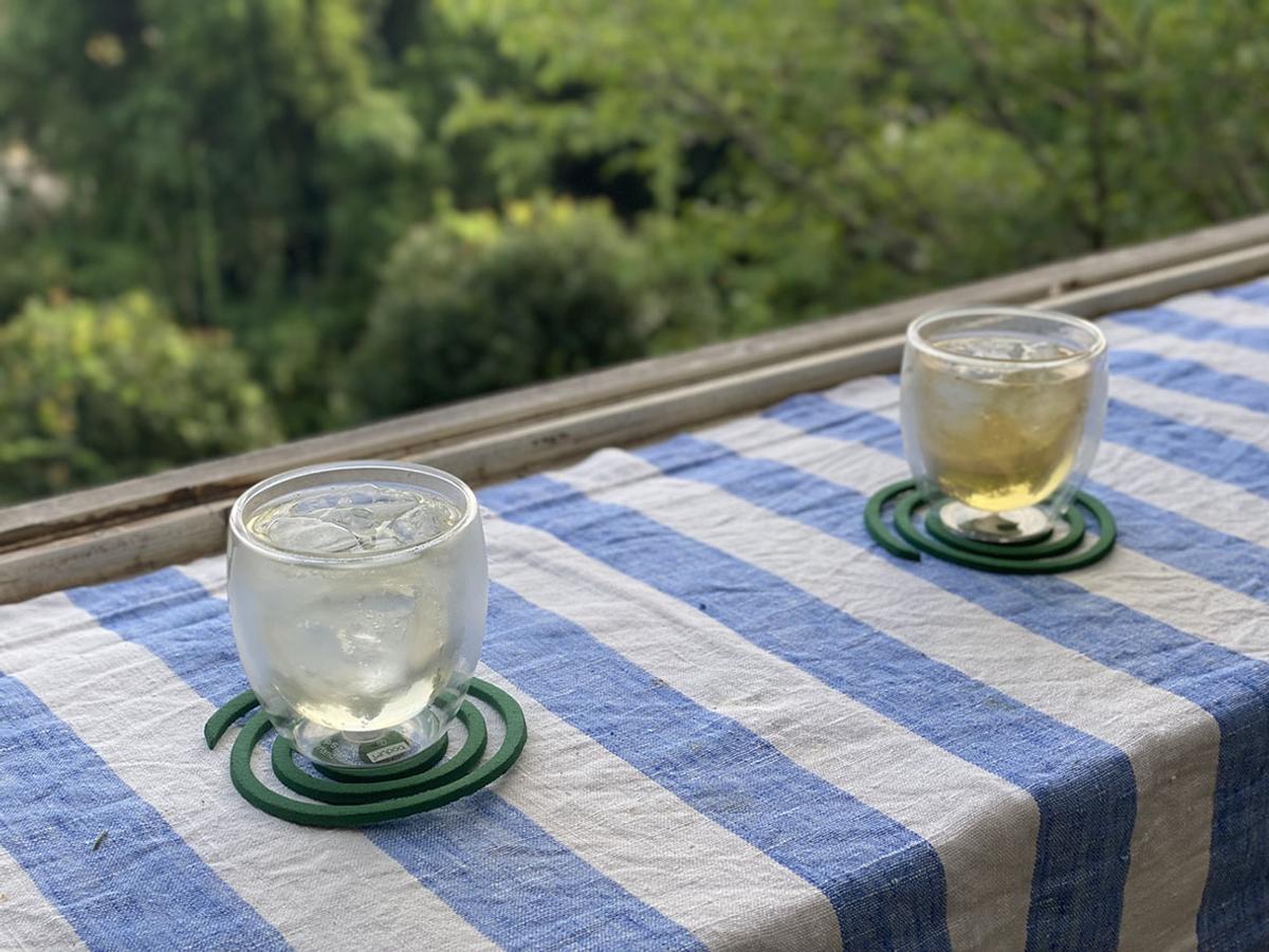 ハイボール。今日のコースターは蚊取り線香(なかなか可愛い)。夕方になると涼しい。風が心地良い。