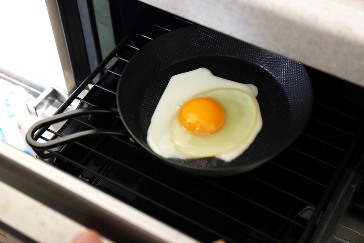 ※コンロで焼く場合は、白身が少し白くなったところで火を止め、蓋をしたまま2~3分蒸らしてください。くれぐれも焼きすぎないように。