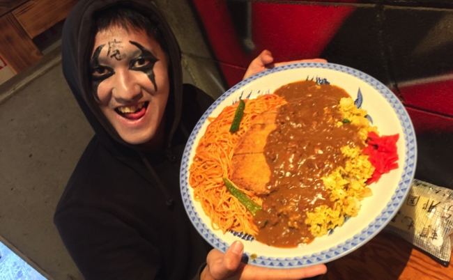 「はい! これがトルコライスの裏バージョンです。作った2つの量を合わせると、約3kgのバカ盛の量になります」