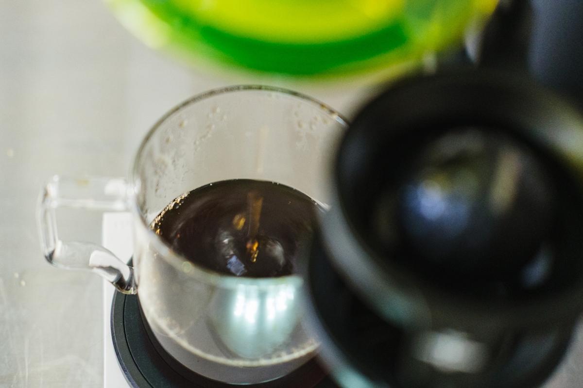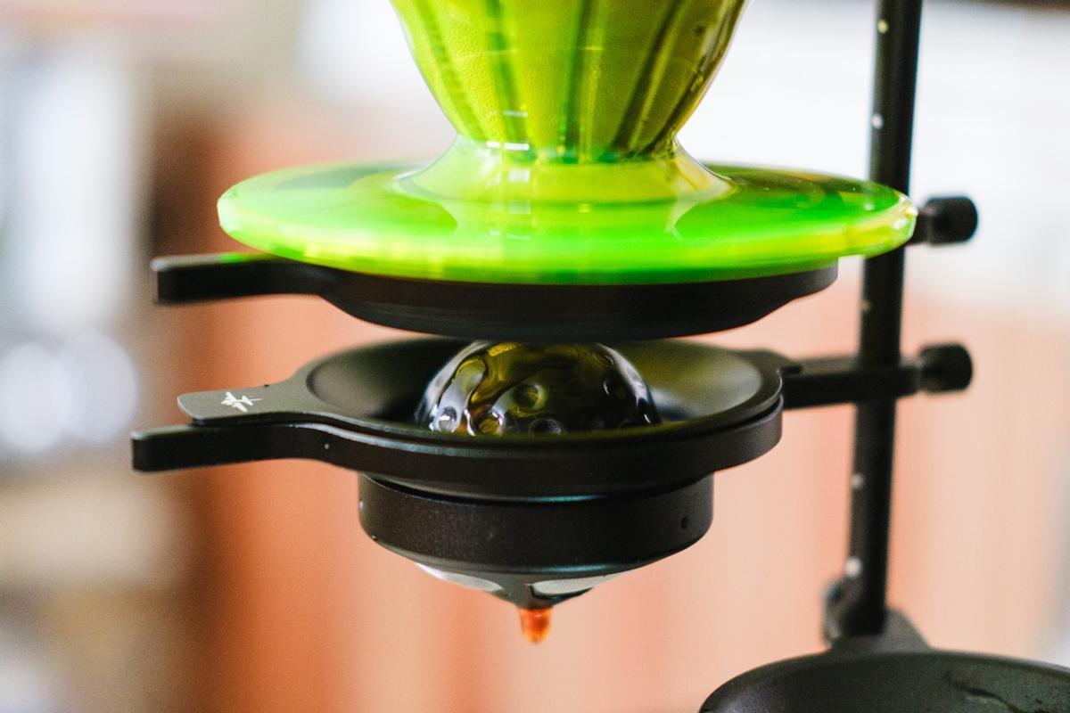 抽出したコーヒーがすぐに当たるよう、なるべくドリッパーとの距離を近づけてセット