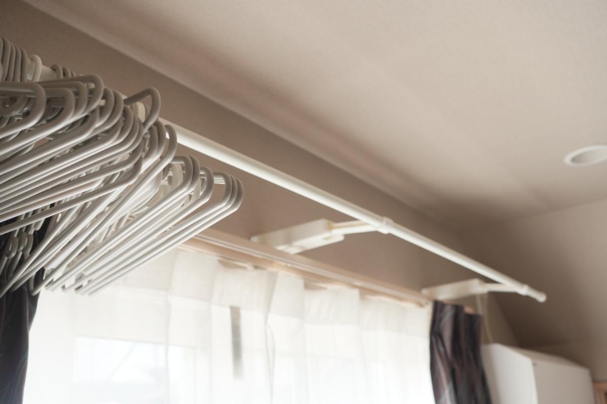 ワイヤータイプやクギでしっかり設置するものまでいろいろ見ましたが、カーテン物干しはカーテンレールの下地を利用して設置できる点が決め手で、2年ほど前に購入しました。