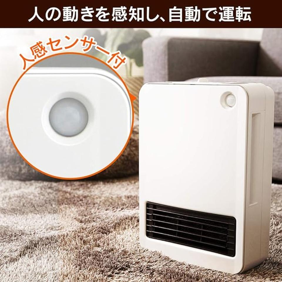 温風は強・弱の2段階切替ができ、寒さに応じて調整可能。人感センサー自動運転と連続運転の切り替えもできるので、使用目的に応じて使い分けられます。最大1200Wのハイパワーで、約8畳までの広さに対応。小さいボディながら、しっかりと暖めてくれる頼もしい一台です。