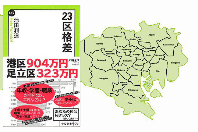 そこでご紹介したいのが、ちょっと異色の地域研究本『23区格差』です。一般社団法人東京23区研究所(そんな組織があるのか!)の所長、池田利通さんが書いた、じつに興味深い一冊。