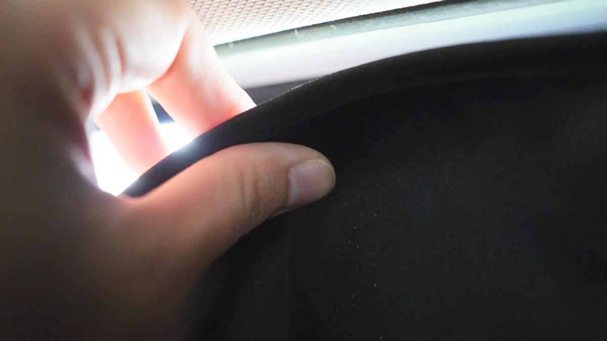 ただ、走行中に後部座席のカーテンをすることは、法律違反ではないのですが、やはり視界が悪くなって運転がしづらくなるので、停止中の使用がベター。また、商品説明にも「走行中の運転席や助手席には使用しないでください」とあるので注意が必要です。