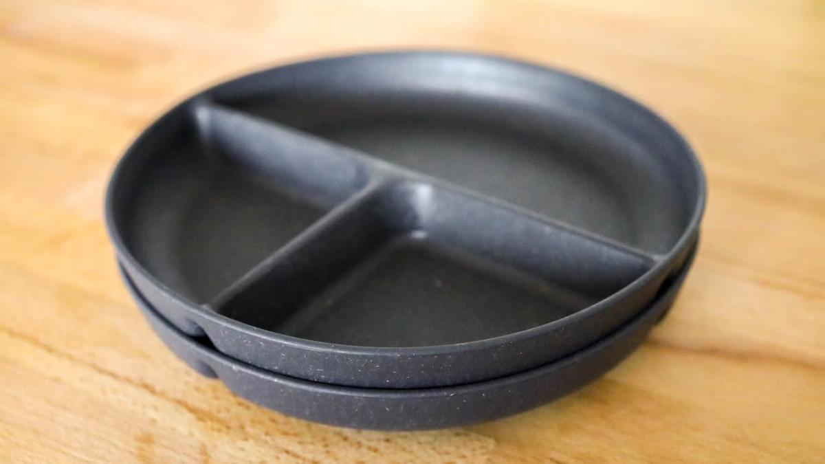 こちら、「レンジで使える ヤシの端材を使った 仕切り付きプレート」。