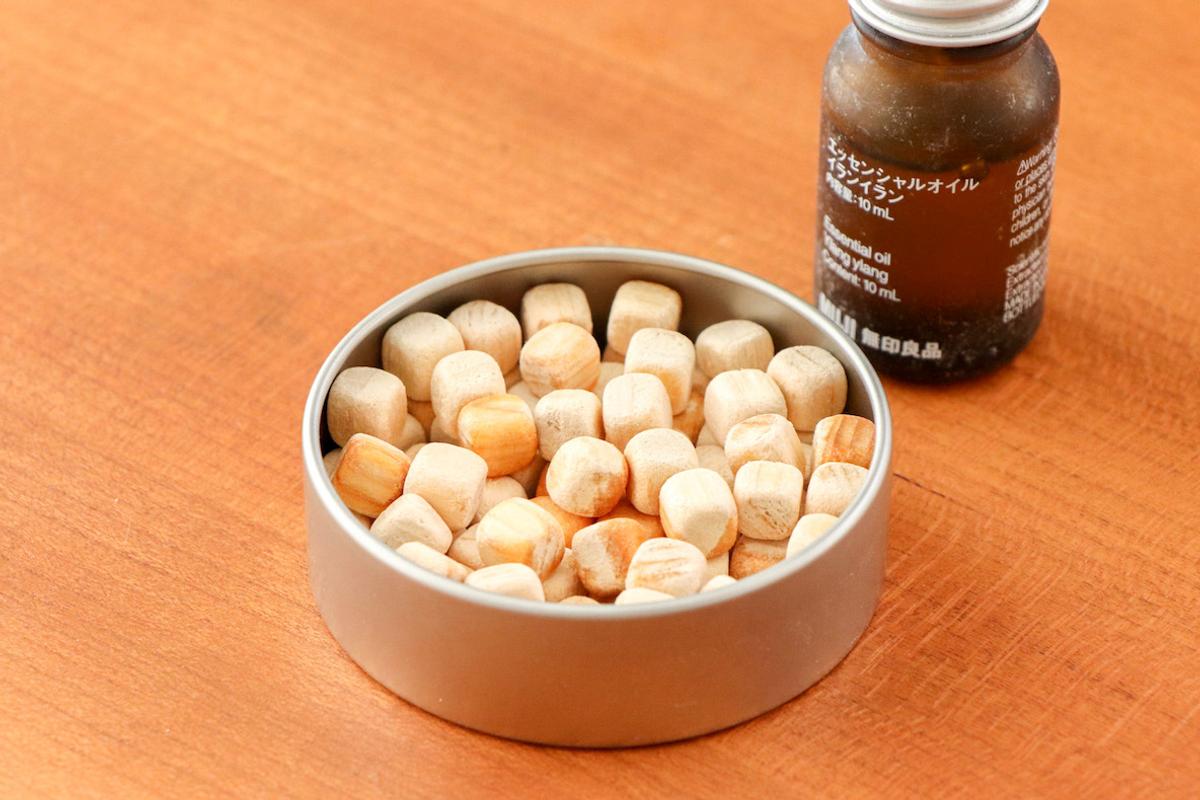 チップはひのきでできているので、これ自体でも香りがふんわり漂ってリラックスできるのが特徴。