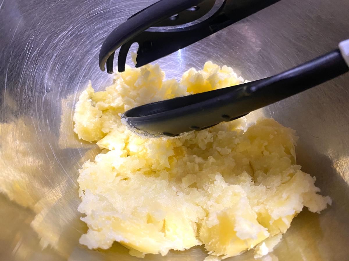 蒸したじゃがいもを潰してみたら、力いらずでしっとりマッシュに。