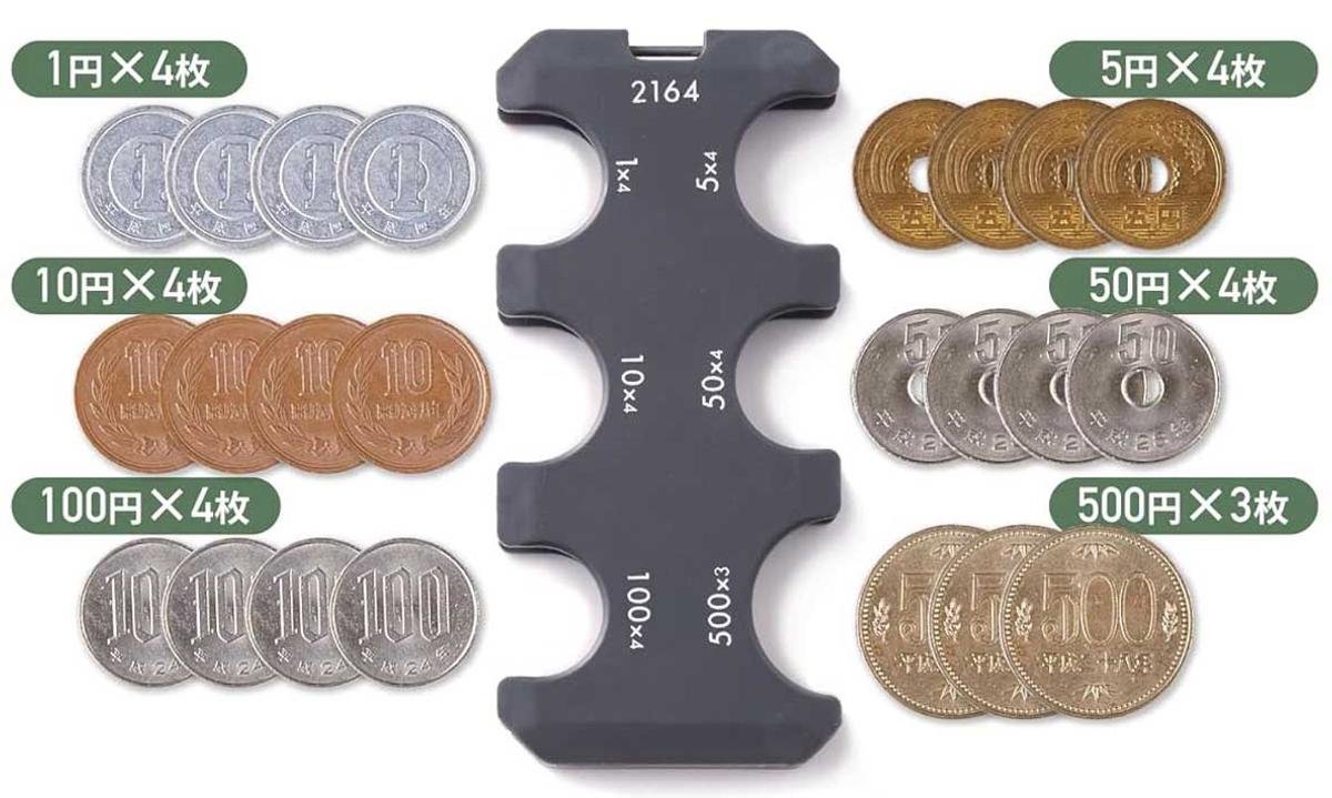1円から100円までの硬貨を各4枚、500円硬貨を3枚しまえるので、うまく計算して払えば「入りきらない!」となることもありません。