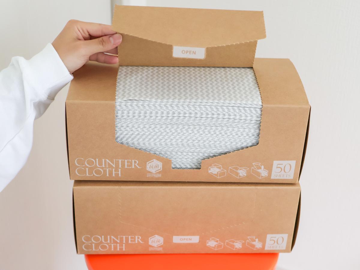 保存用の外箱に、50枚のカウンタークロスが入ったアイテムです。