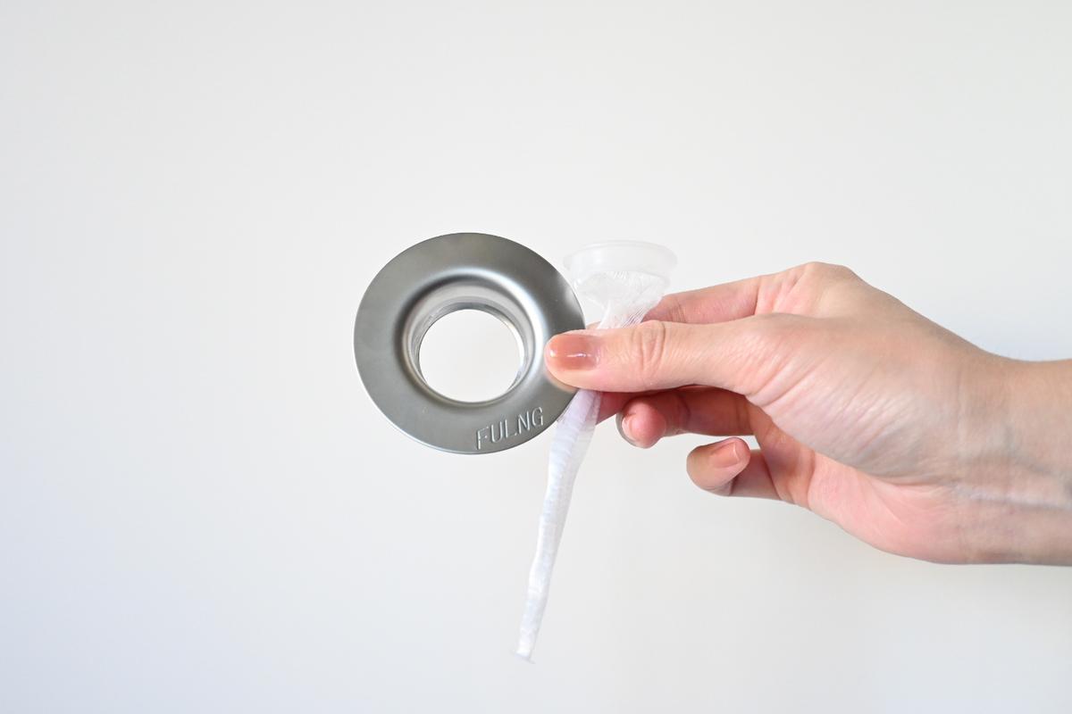 一方でFLUNGの専用ネットは、排水口カバーの上からスポッとはめ込むだけで簡単にセットできるんです。