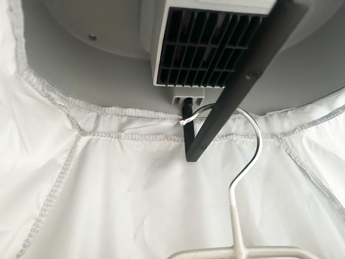 あと、SNSでも話題になる「フーディのフード部分がなかなか乾かない問題」。筆者はフーディを持っていないのですが、「fukari」公式ページによると、フード部分もしっかり乾燥できるとのこと。「fukari」は本体から下に向かって温風が吹き出すので、衣類の上部から乾いていくからですね。