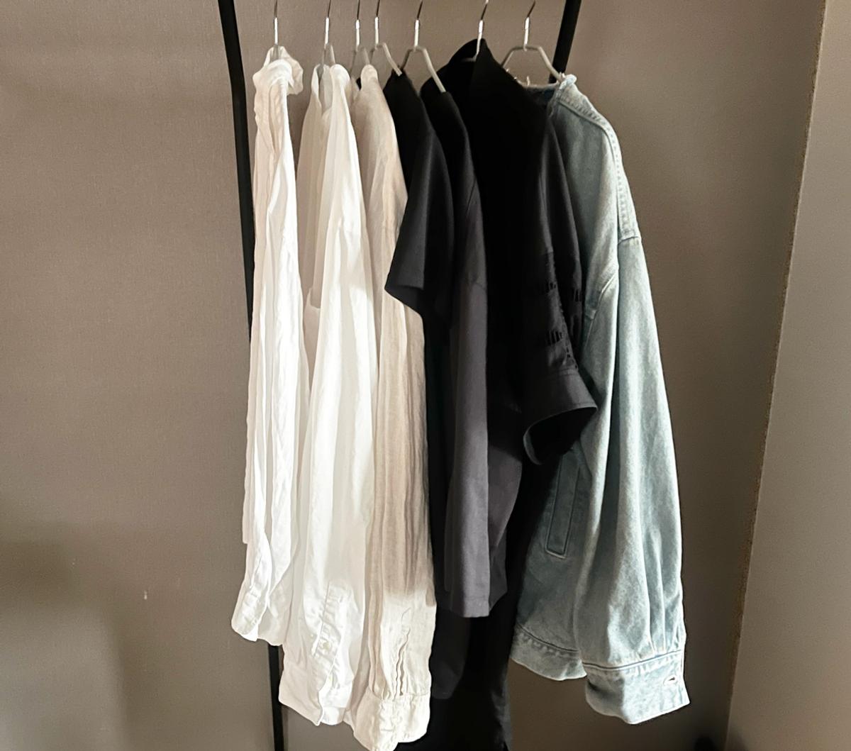 シャツはドラム式で乾燥するとどうしてもシワになりがちですが、「fukari」は吊るして乾かすので、カジュアルなシーンならノーアイロンでOKなレベル……!