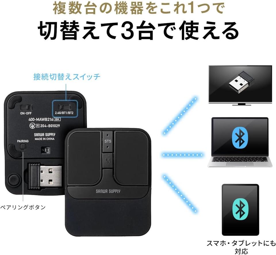 超小型・超薄型で持ち運びラクラク、3台マルチペアリングで作業効率アップ。しかも静音設計で場所を選ばず使えます。今は最安値の好条件。モバイル用途のマウスを探しているなら、まずはサンワダイレクトの「400-MAWB216GM」を検討してみてください。
