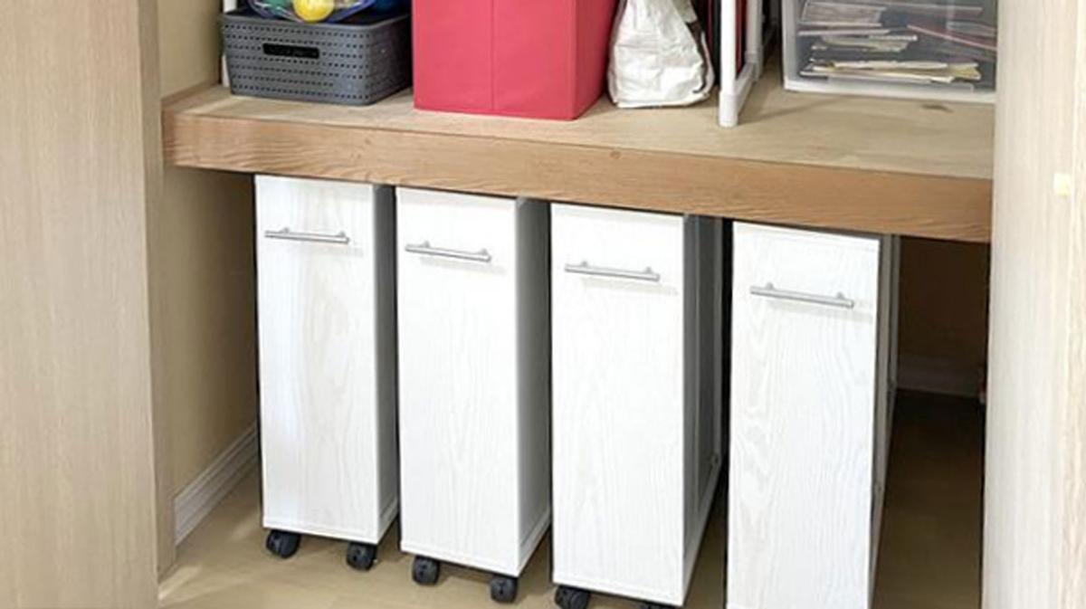 奥行きが15cmでたくさん入る「大」のサイズもあったのですが、掃除のことも考えて、よりフットワークの軽そうな「スリム」をチョイスしました。