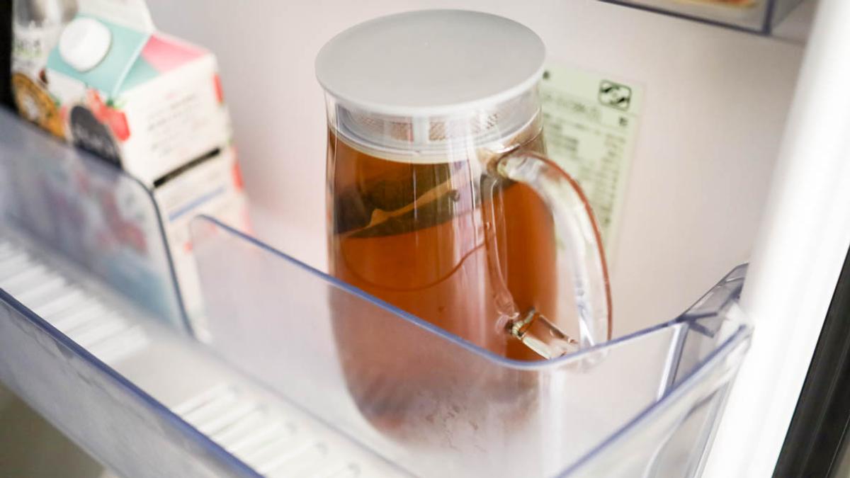 そして、驚いたのが水漏れのしにくさ。試しにお茶を入れてみたのですが、しっかり蓋をすると縦にしてもこぼれません。