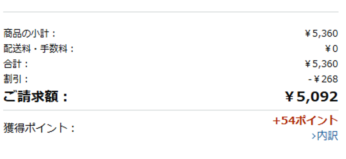③割引適用後はこのように5%OFF表記があれば成功です。