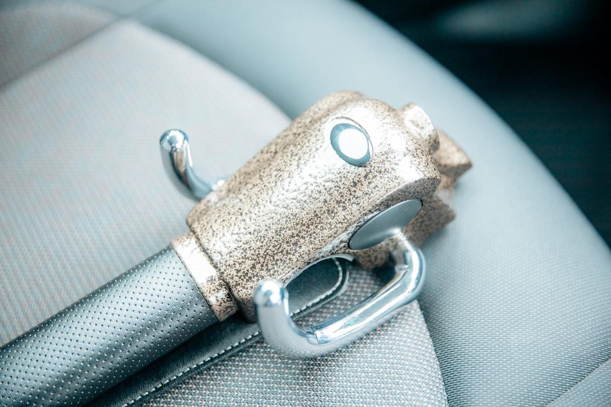 さらにハンドルロックを取り付けた状態で強引にハンドルを動かそうとすると、レザー部分に圧力が加わり、クラクションが鳴る作りに。