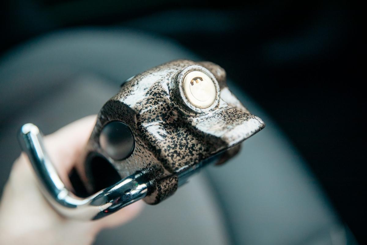 ブレーキロックにハンドルロック、車のボディカバーなど。さまざまな盗難防止グッズが販売されている中で選んだのは「LESTA ハンドルロック」。