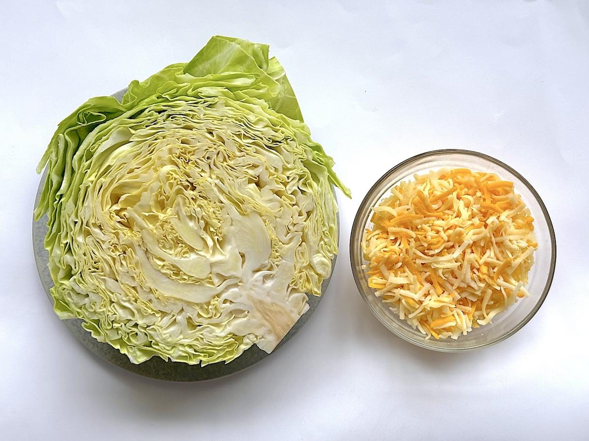手順1でキャベツをできるだけ細く切ると早くしんなりしますし、チーズの上にのせやすくなります。
