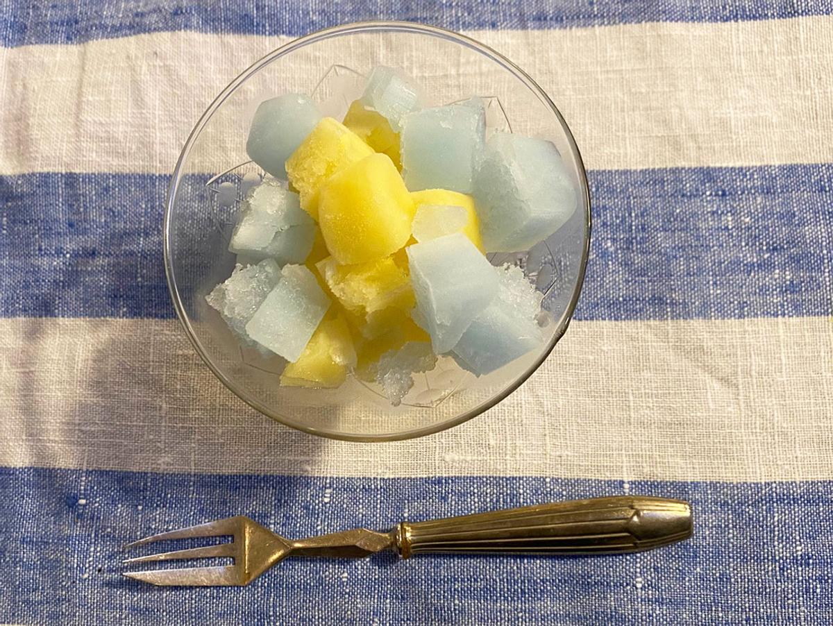 タンとアイスブルーのちょっとくすんだカラーが新鮮