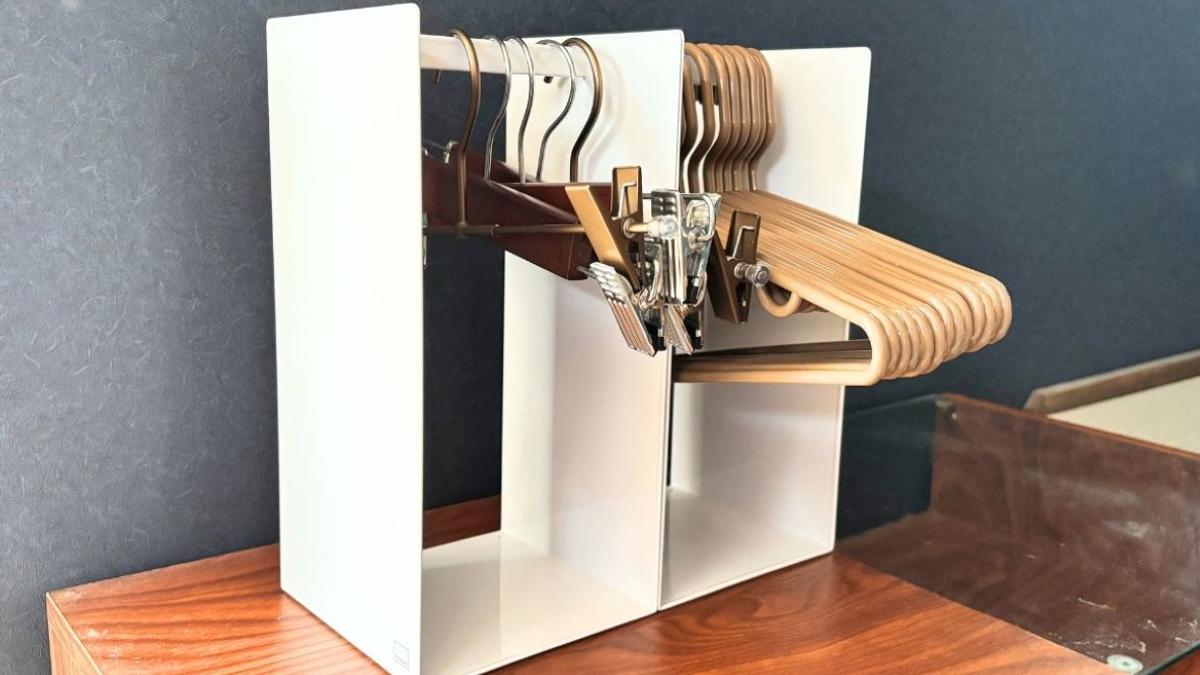 使っていないときのハンガーって、正直ちょっと邪魔。カゴに入れると絡まるし、引き出しにしまうと取り出しにくい。どう収納しても微妙に使いにくくてモヤモヤしていました。
