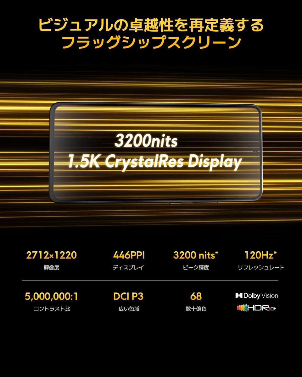 またバッテリーは6000mAhの大容量で、さらに90Wの急速充電に対応。 これにより、わずか約42分で100%まで急速充電ができるので、忙しい日常を過ごす方にぴったりなスマホです。