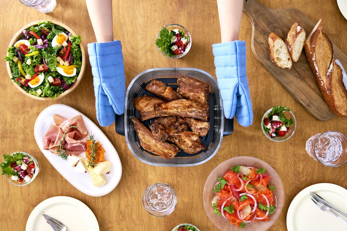 Ninja Crispi 「テーブルクッカー」を食卓に出す様子
