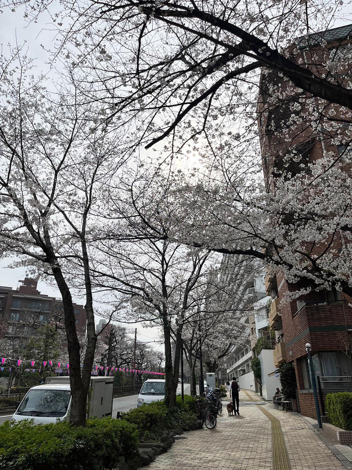 文京区の友人から送られてきた「東京文京区播磨坂の桜並木」の写真。黄砂を浴びてぼんやりしているけど、ほぼ満開? ここの桜並木、綺麗だよねえ。