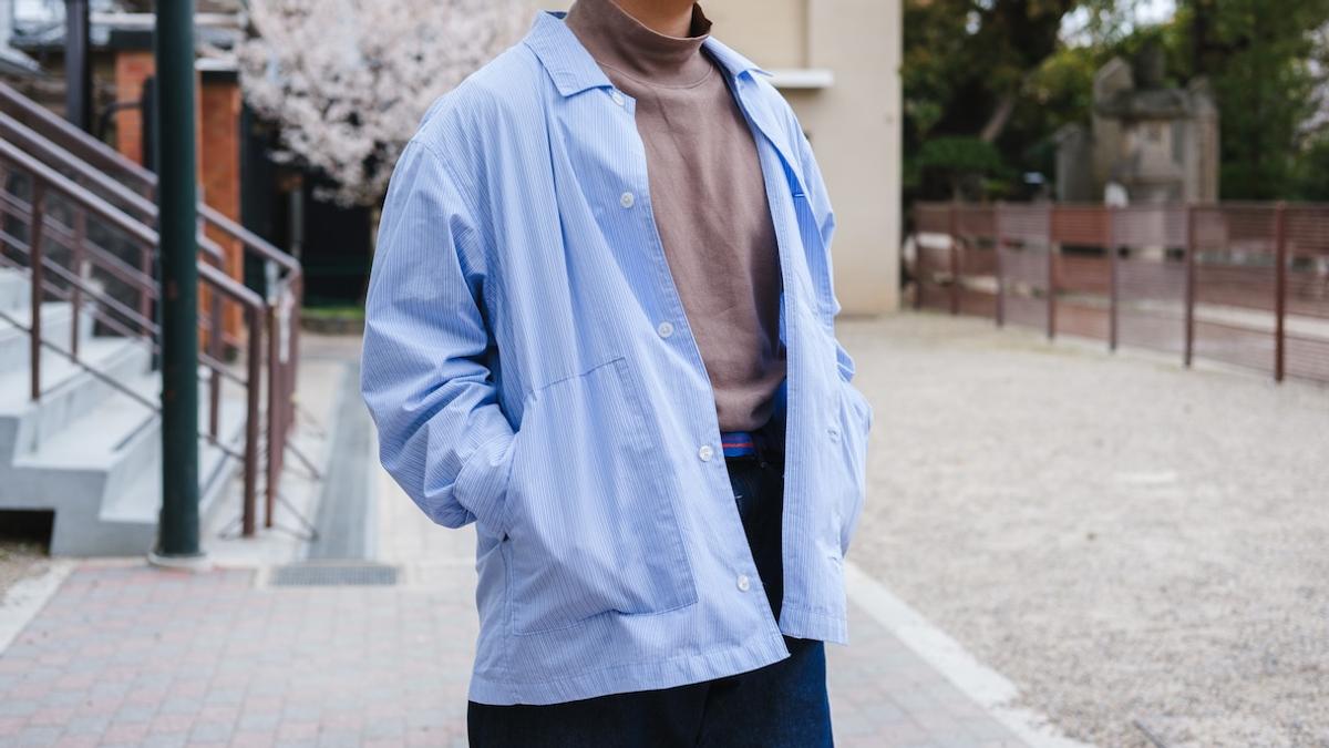 中に薄手のスウェットやロンTを着込んでももたつかず、軽いアウターとしてサッと羽織れるのが便利です。
