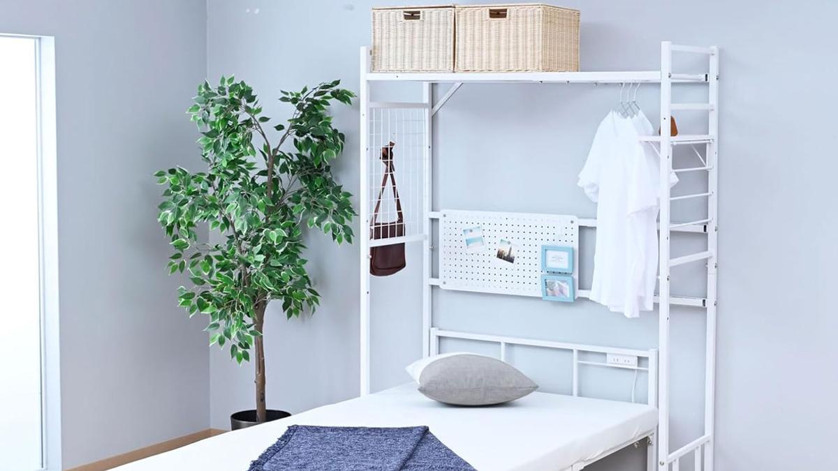 ベッドや机の“上”を収納場所に変えてくれるのが、山善の「伸縮式 マルチラック」です。