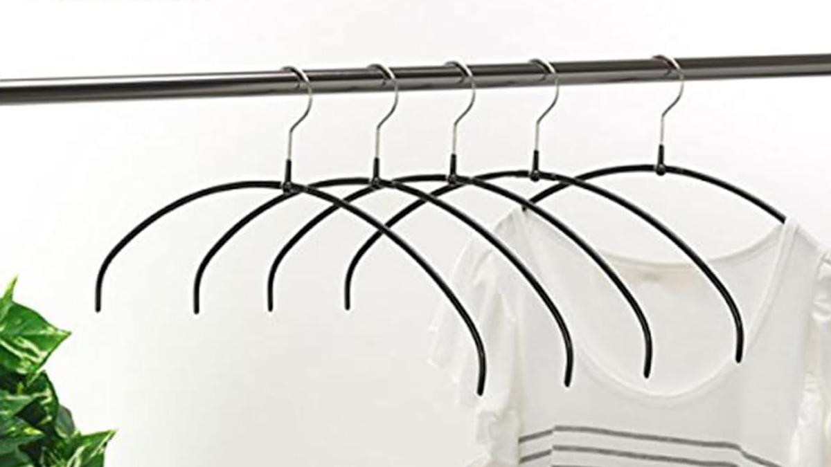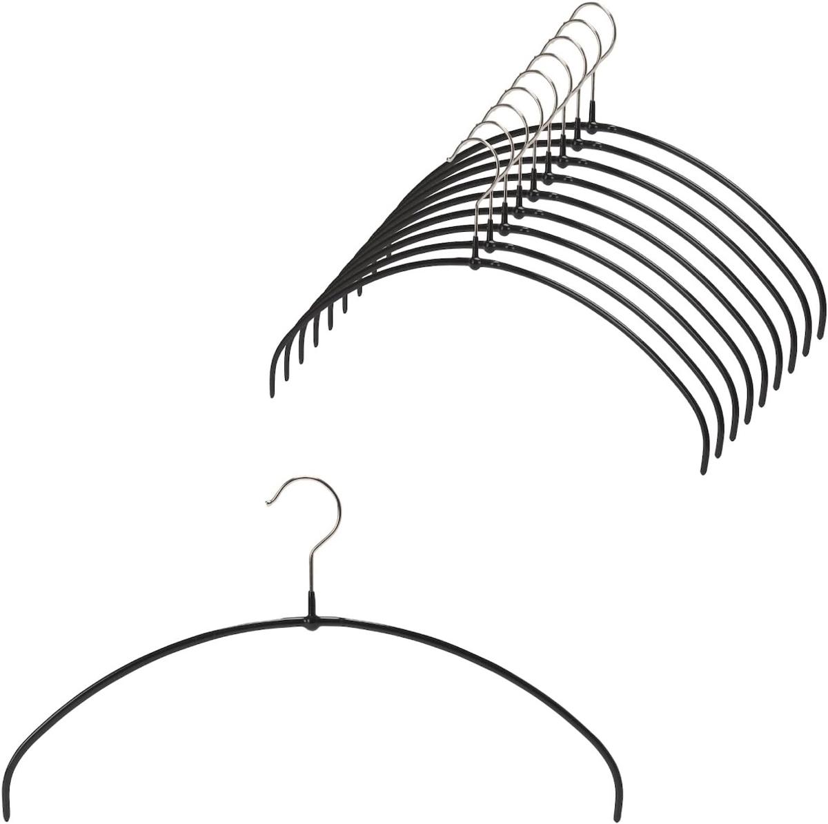 曲線を描くような形状のおかげで肩の部分が出っ張らず、不自然に伸びてしまわないという優れもの。スチール製のハンガー本体にPVC樹脂で特殊コーティングが施されており、掛けた衣類が滑り落ちにくいのも便利なんです。