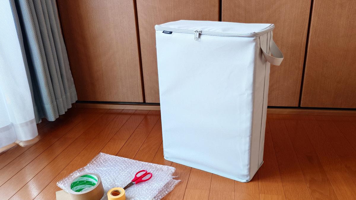 ダンボールやプチプチ、ガムテープやカッターなどの梱包資材をまとめてスッキリ収納できる便利なソフトボックスです。