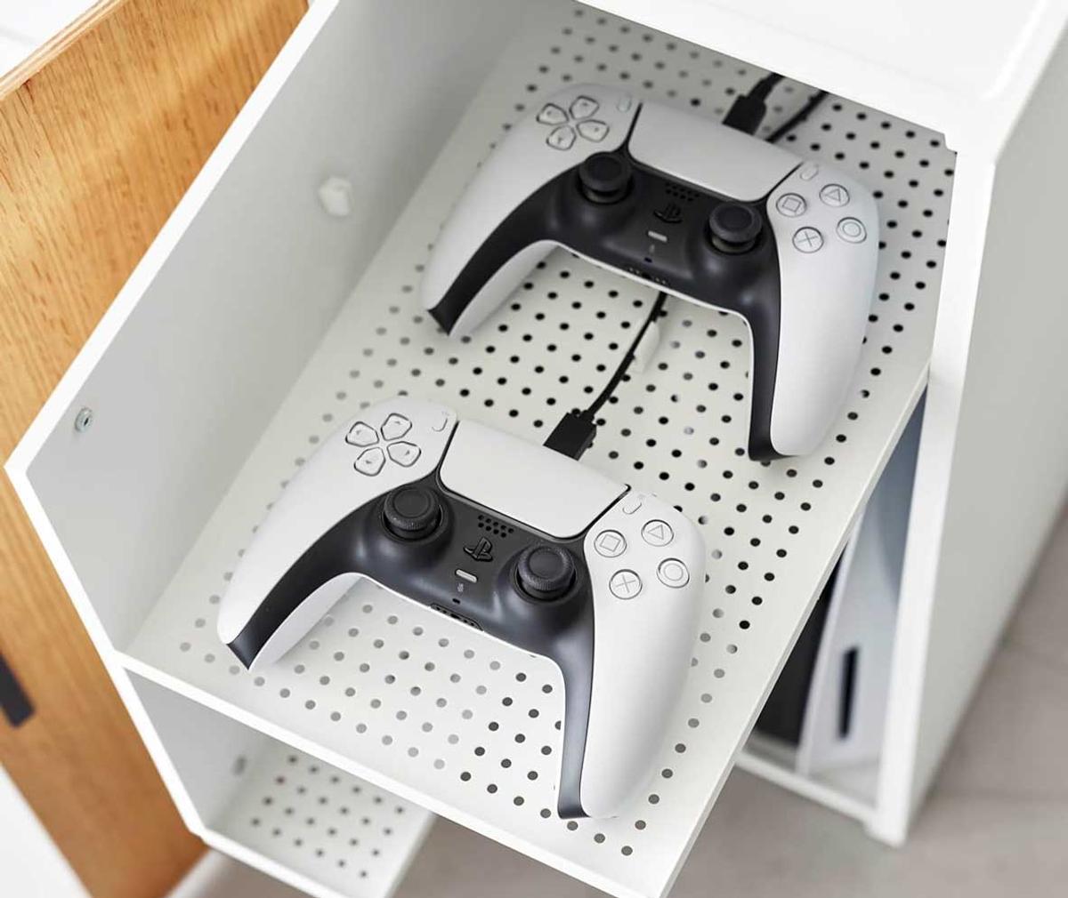 さらに、上部は棚になっているのでプロコンやヘッドホン、充電器といった関連アイテムを一緒に入れておけます。