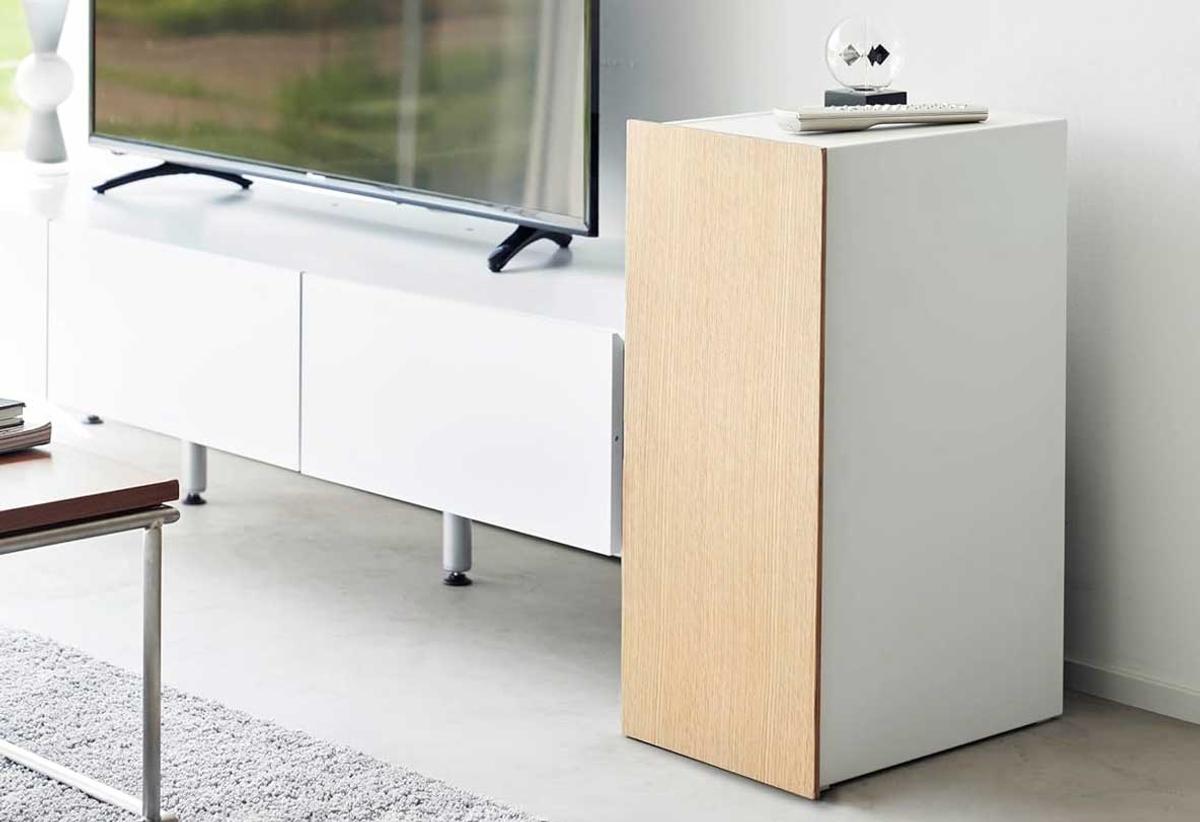 左のスペースに小型のゲーム機やコントローラーを収納すれば、テレビ周りがスッキリ。