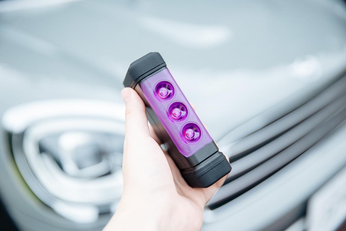 パープルセーバーの天面と底面にはマグネットが仕込まれており、ルーフに置くだけでピタッと取り付けられます。
