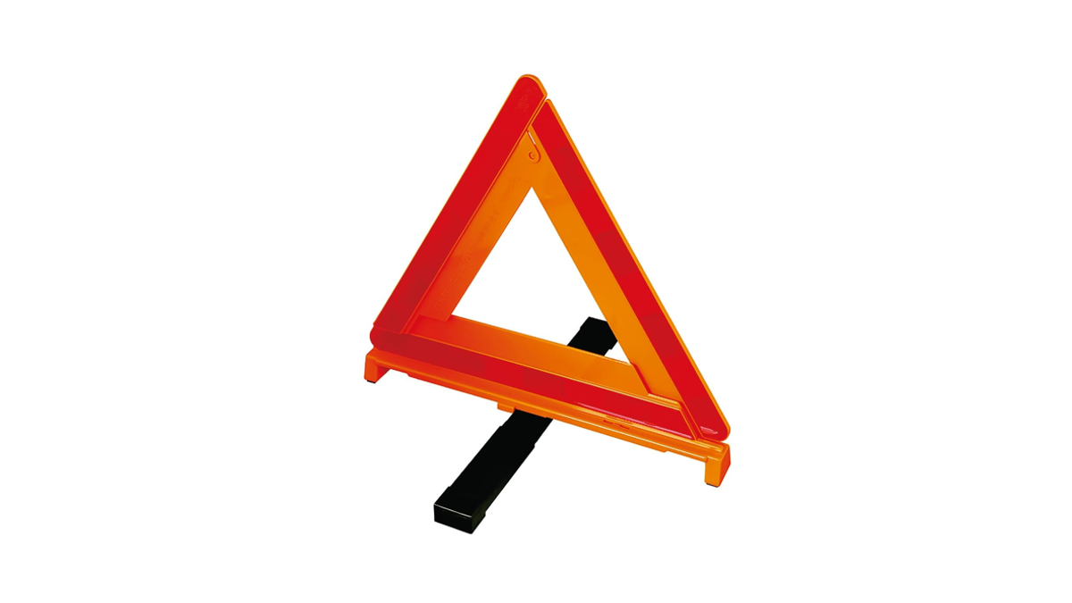 たとえば、高速道路で万が一のことが起きたときに、車の後方に設置しなければならない「三角表示板」。