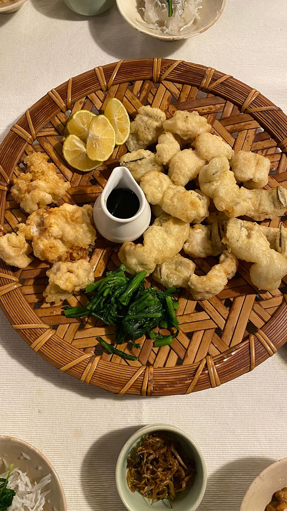 穴子とアオリイカのゲソを天ぷら。最後に秋の果実「柿」で締めました。