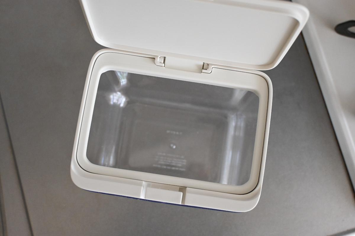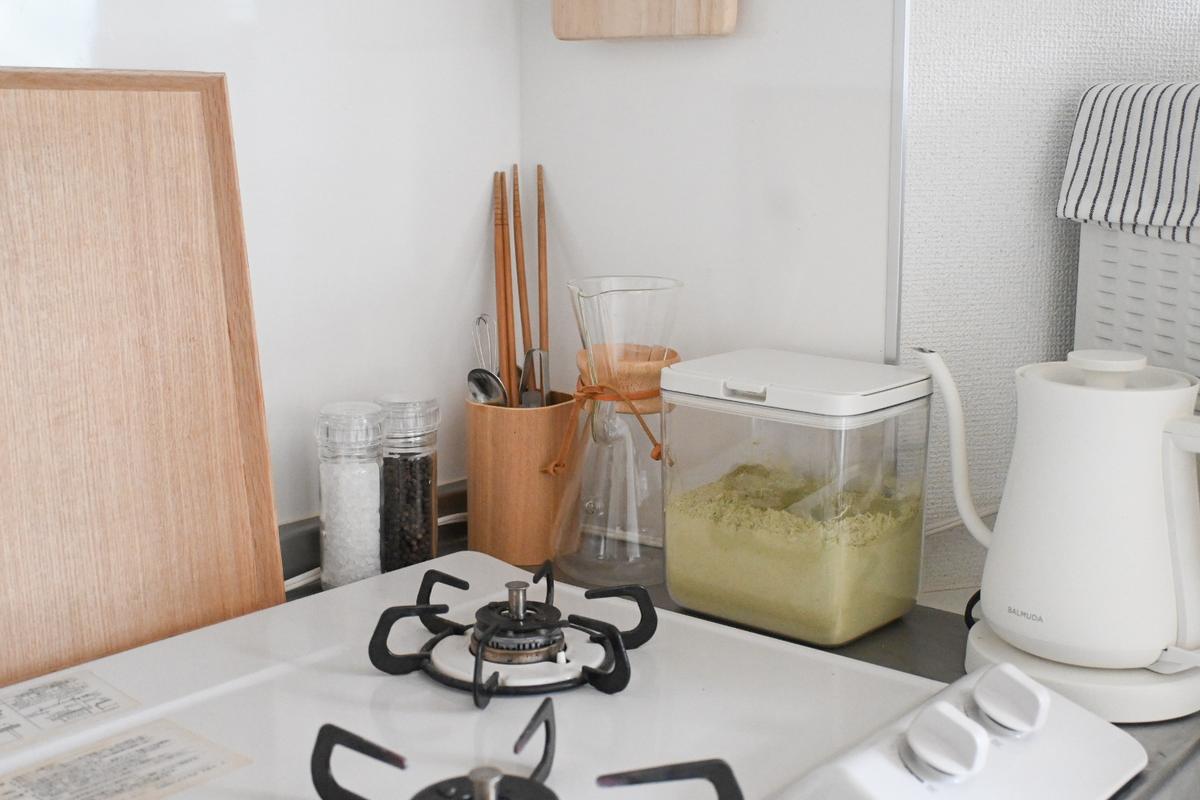 乾物用の容器はかさばるイメージがありますが、こちらは正方形に近いコンパクトな設計。本体はシンプルですっきりとしたデザインなので、キッチンに出しっぱなしでも生活感が出ません。