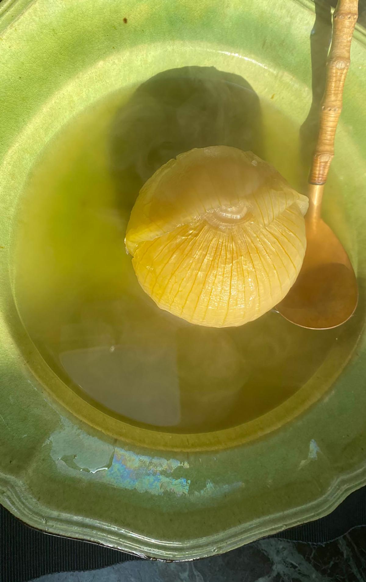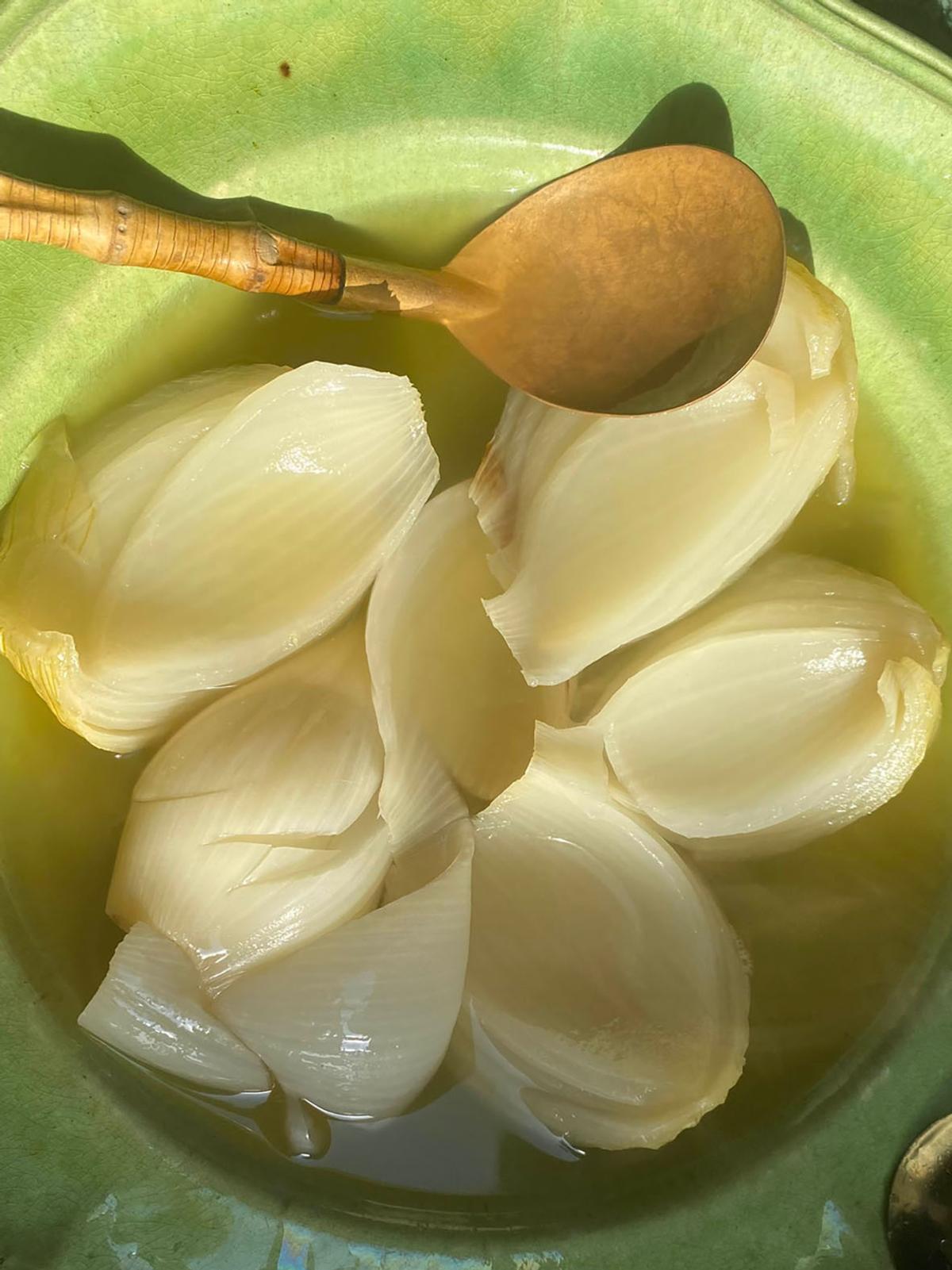 昼になったら少し気分良しになったので、おととい煮てあった淡路島の玉ねぎ丸ごと煮を、ザクザク切って食べる(大きな百合根みたいな姿)。