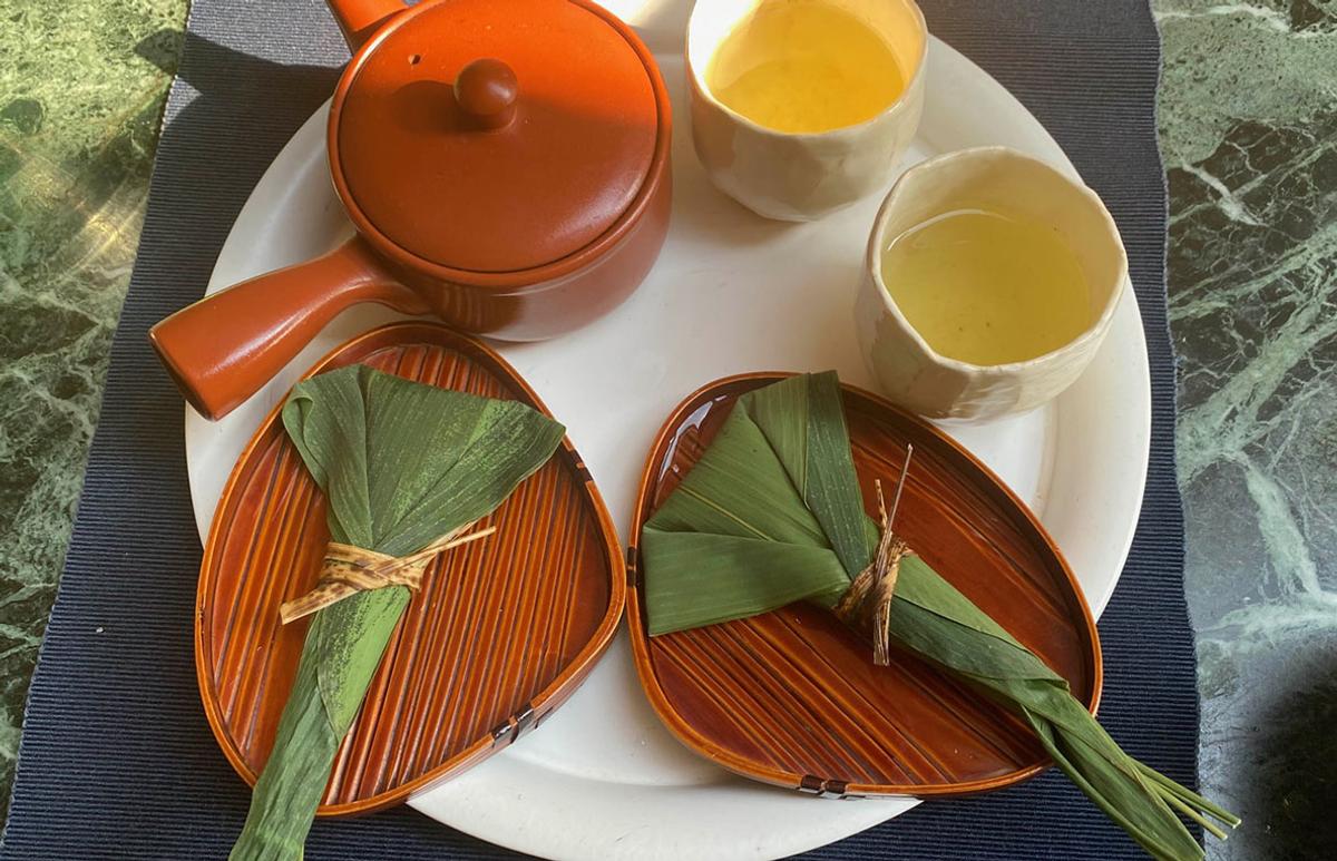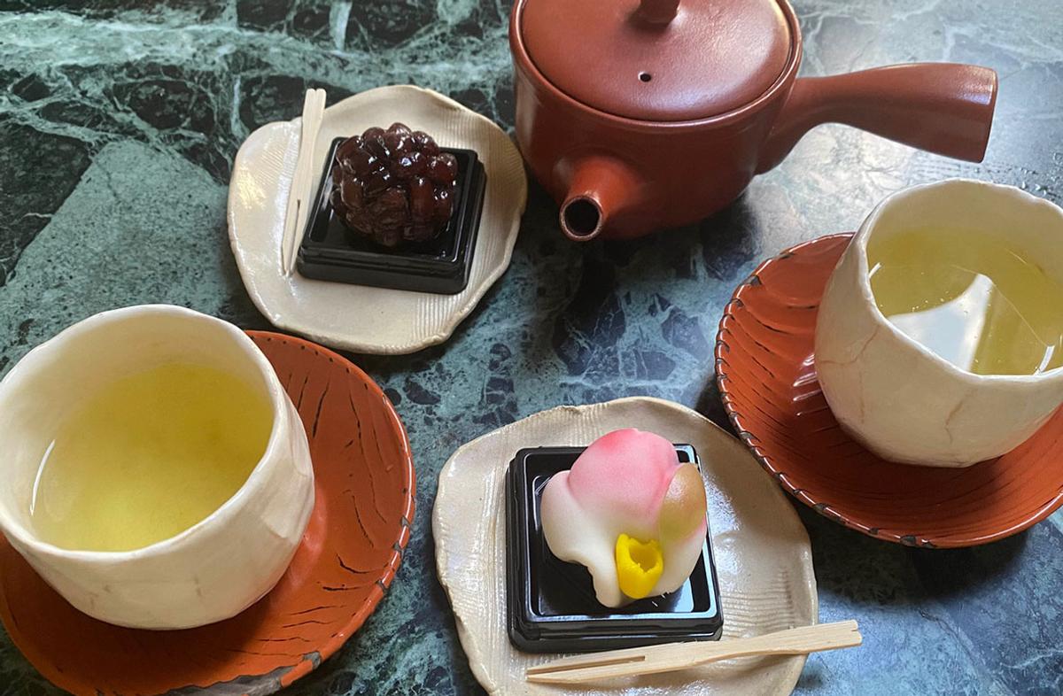 リハビリに行ったら待つというので、一度家に戻り、練り切り和菓子と日本茶。食欲不振でも甘味は食べられる。