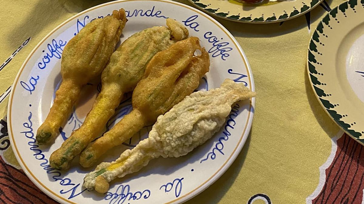 スナップエンドウとカリフローレ、トマトとブッラータとバジル、サラミ。花ズッキーニのフライ(衣をぼってりさせました)。そしてまたもやピザ。今回は徹くんが練ったピザ生地を使用。
