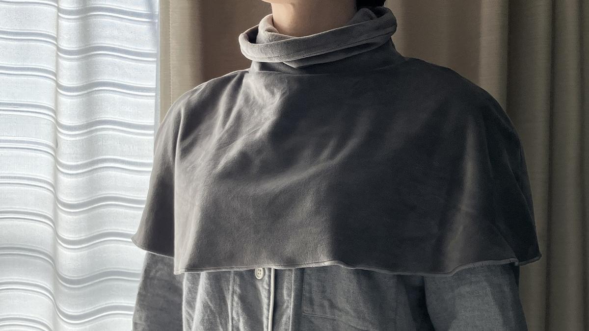 そこで、手軽な冷え対策としてケープ型ネックウォーマーを手に入れたのですが、これがなかなかの優れもの。寝るときだけでなく家事をするときも大活躍です。