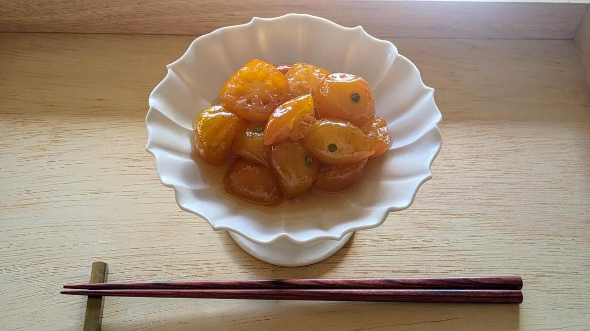 きんかんはそのまま食べてもおいしいのですが、シロップ煮にするとスイーツのように甘くて保存が可能になります。