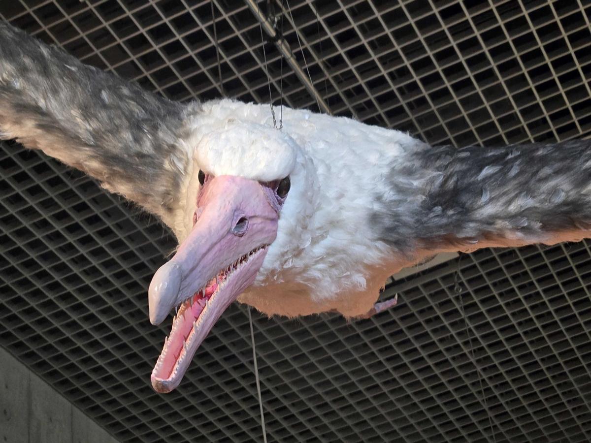 史上最大級の鳥類「ペラゴルニス・サンデルシ」の復元モデル。羽を広げると7mくらいあるそうな