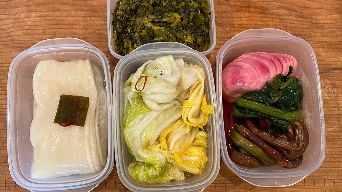 どんより重たい曇り空。雨が降らなきゃいいがねえ……そう思っているのは11時から葉山町にあるSpain Bar哲の2周年を祝う集いが屋外で開かれるから。京都在住の友人が京つけもの(きたの)をこんなにいっぱい送ってくれた。保存容器に入れ替えてみると、こんなに爽やか。ありがたや、有難や。